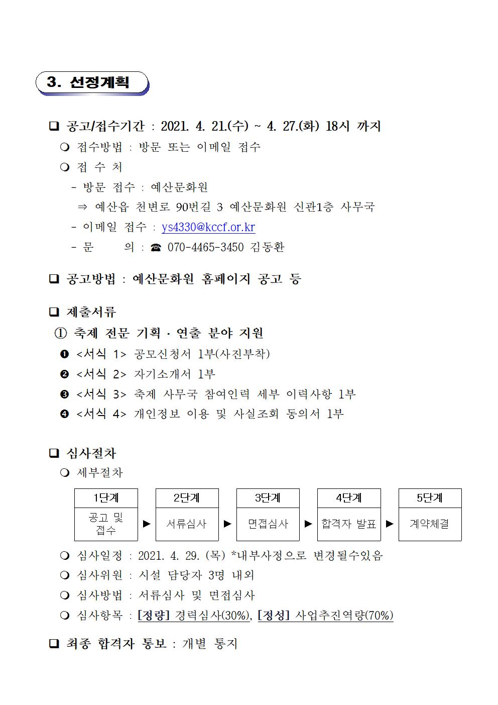 예산군의 지역문화와 명소의 특색에 맞춘 ‘색깔 있는 문화 축제’ 로 문화가있는날 지역특화프로그램의 성공적인 개최를 위해 아래와 같이 역량 있는 문화행사 전문 기획, 연출자를 모집 하오 니 많은 관심과 지원 바랍니다.