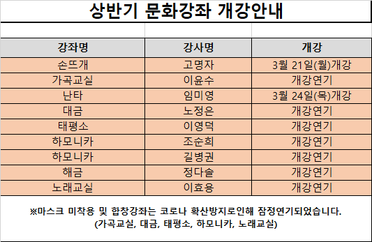 『 [예산문화원] 개강지연강좌 개강안내 』글의 상세내용을 확인하는 표로 제목, 작성자, 등록일, 조회, 첨부, 내용으로 나뉘어 설명합니다.