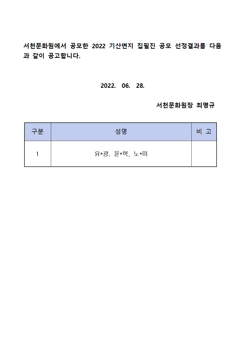 『 2022 기산면지 집필진 선정결과 』글의 상세내용을 확인하는 표로 제목, 작성자, 등록일, 조회, 첨부, 내용으로 나뉘어 설명합니다.