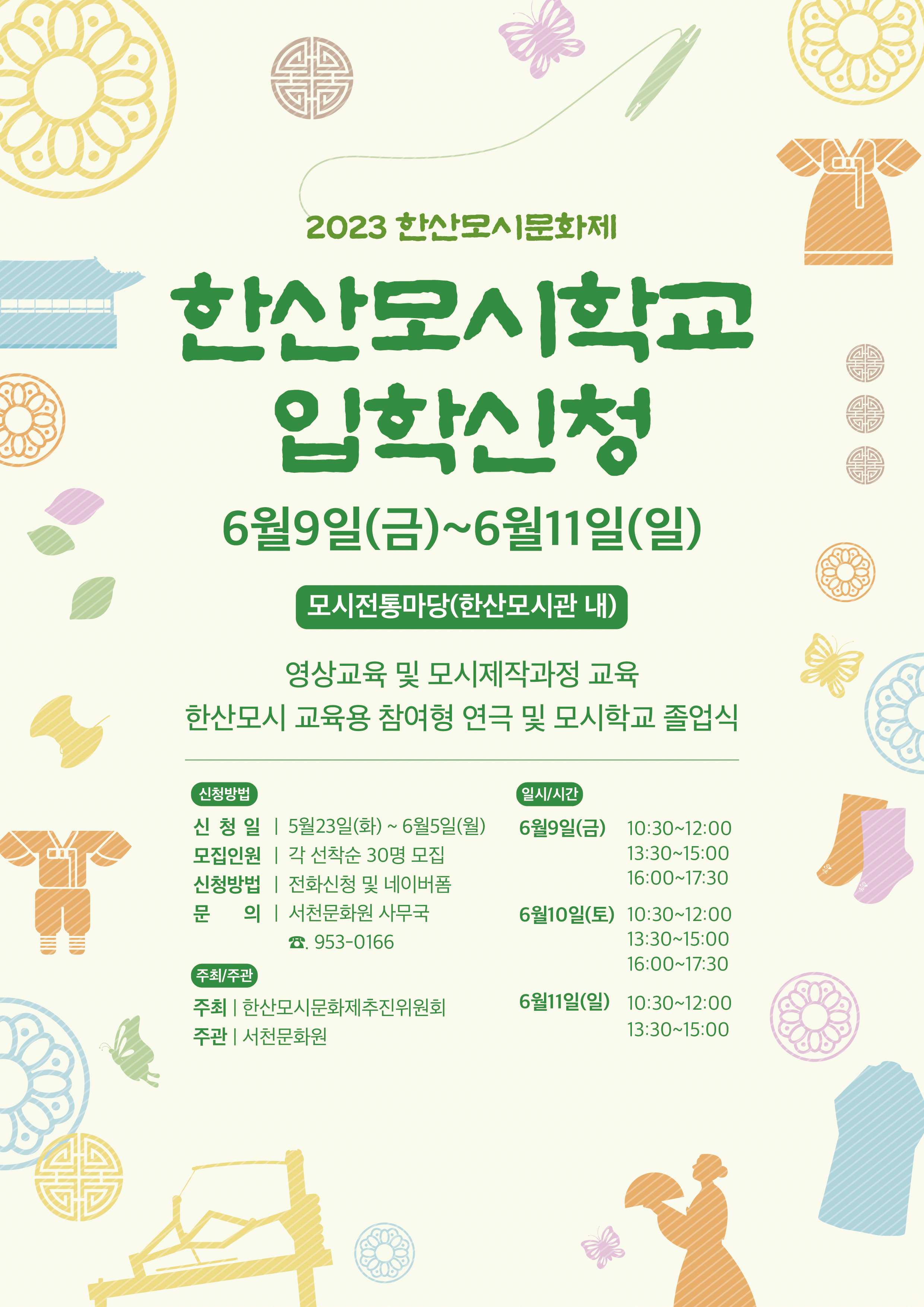 『 2023 한산모시문화제 한산모시학교 신청안내 』글의 상세내용을 확인하는 표로 제목, 작성자, 등록일, 조회, 첨부, 내용으로 나뉘어 설명합니다.