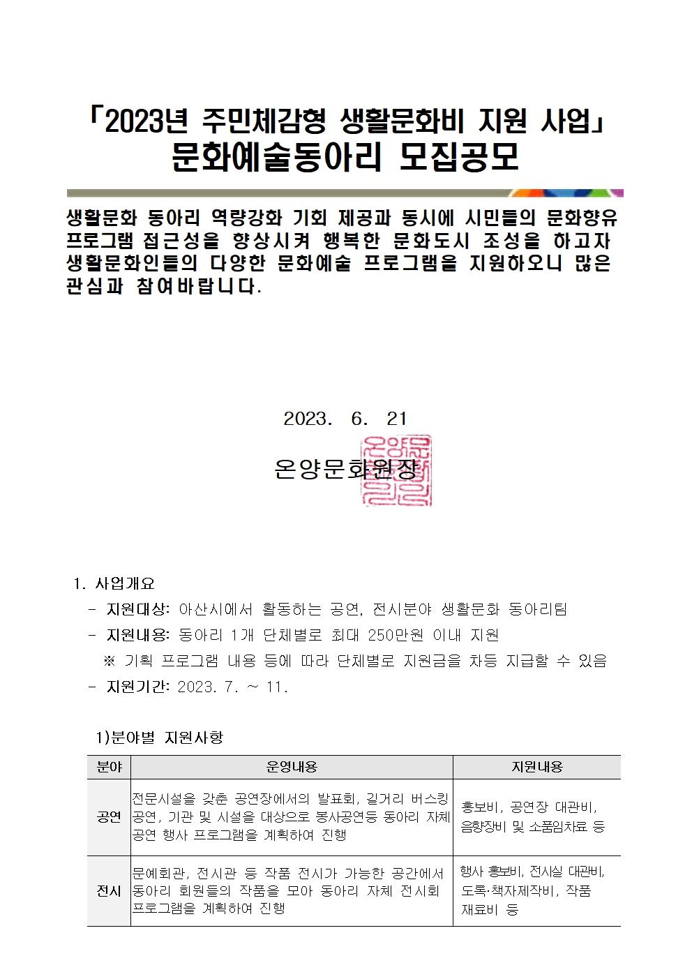 | 제목 | 2023년 주민체감형 생활문화비 지원사업 동아리 참가자 모집 | ||||