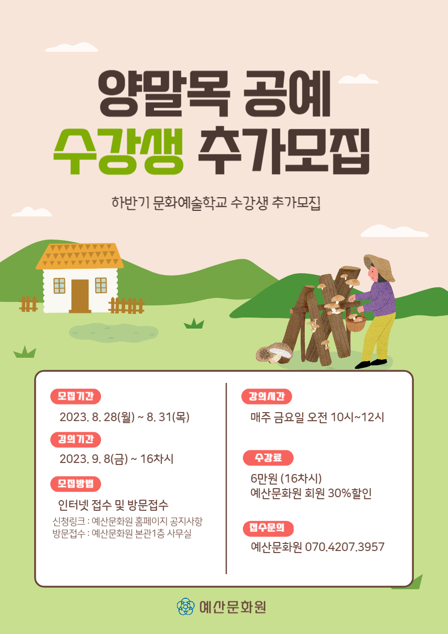 | 작성자 | 예산문화원 | 등록일 | 2023-08-25 | 조회 | 550 |