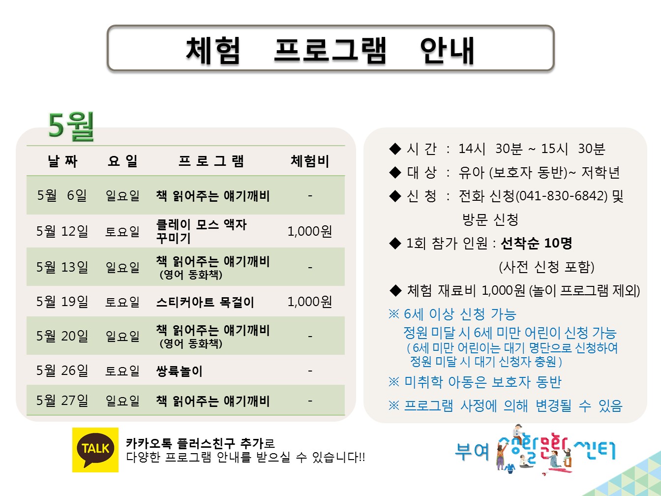 『 2018년 5월 체험프로그램 안내(종료) 』글의 상세내용을 확인하는 표로 제목, 작성자, 등록일, 조회, 첨부, 내용으로 나뉘어 설명합니다.