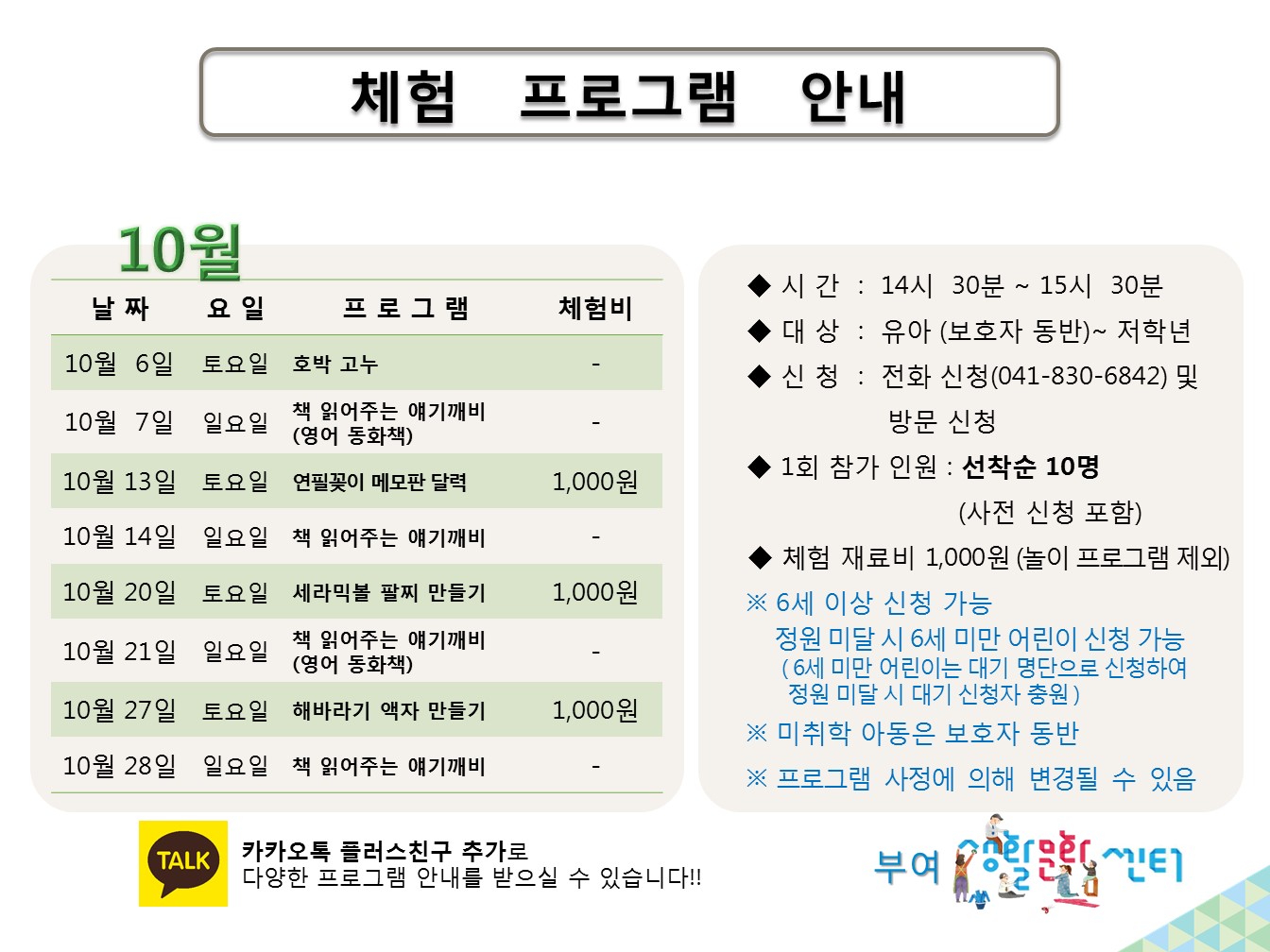 『 2018년 10월 체험프로그램 안내(종료) 』글의 상세내용을 확인하는 표로 제목, 작성자, 등록일, 조회, 첨부, 내용으로 나뉘어 설명합니다.