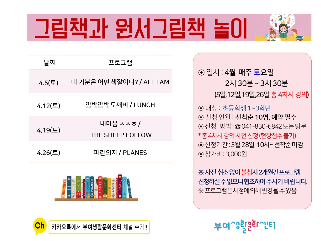 『 2025년 4월 체험프로그램 안내 』글의 상세내용을 확인하는 표로 제목, 작성자, 등록일, 조회, 첨부, 내용으로 나뉘어 설명합니다.