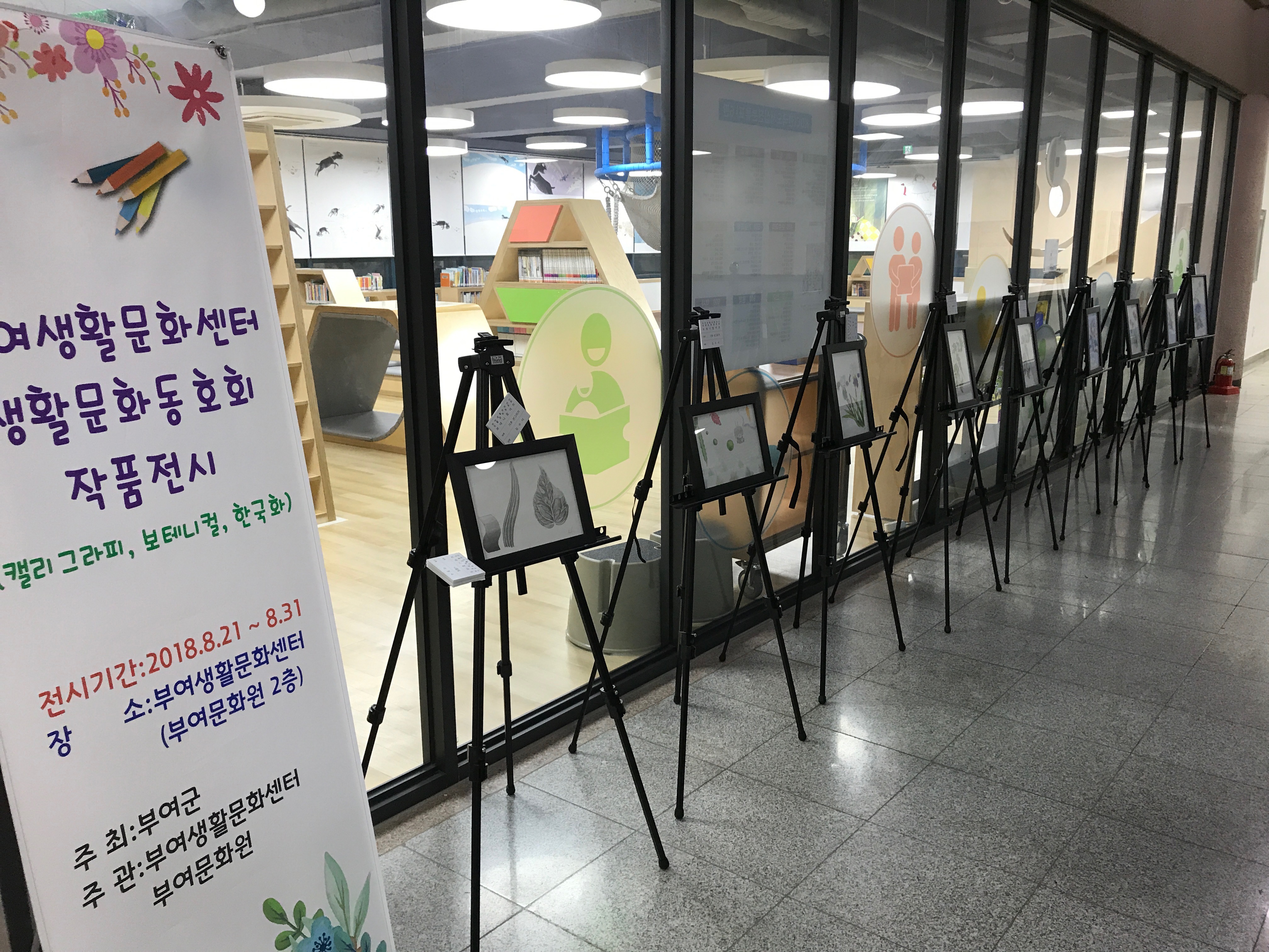 2018년 상반기 생활문화동호회 강좌 프로그램을 종료하고 작품 발표 및 전시회를 진행 중입니다.