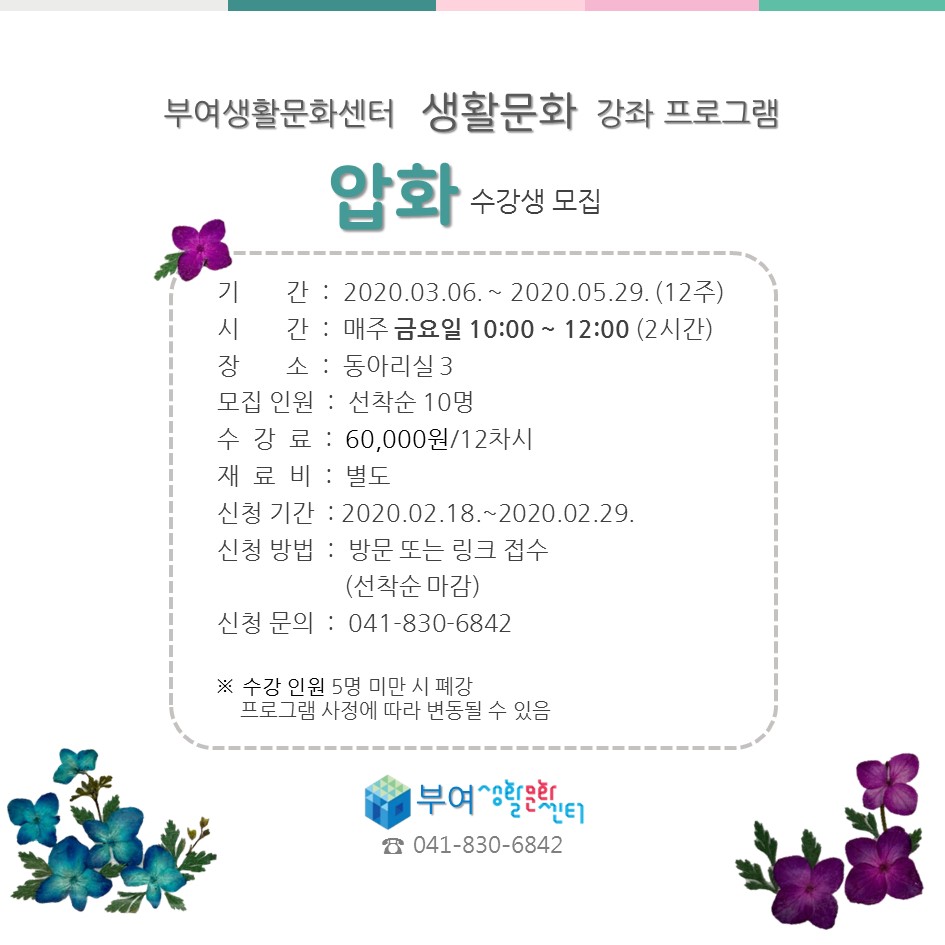 | 제목 | [2020년 상반기] 압화 수강생 모집(연기) | ||||