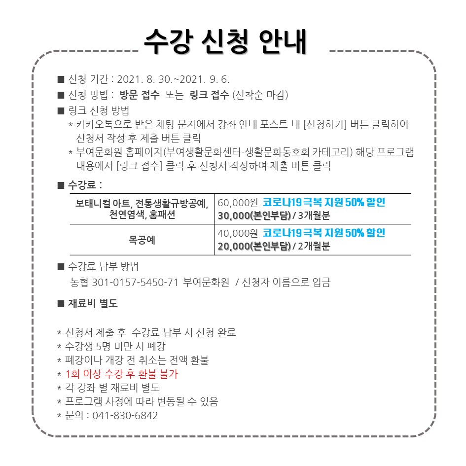 [부여문화원] - 부여생활문화센터 - 생활문화동호회- 프로그램의 이전글과 다음글을 보여주는 설명하는 표입니다.