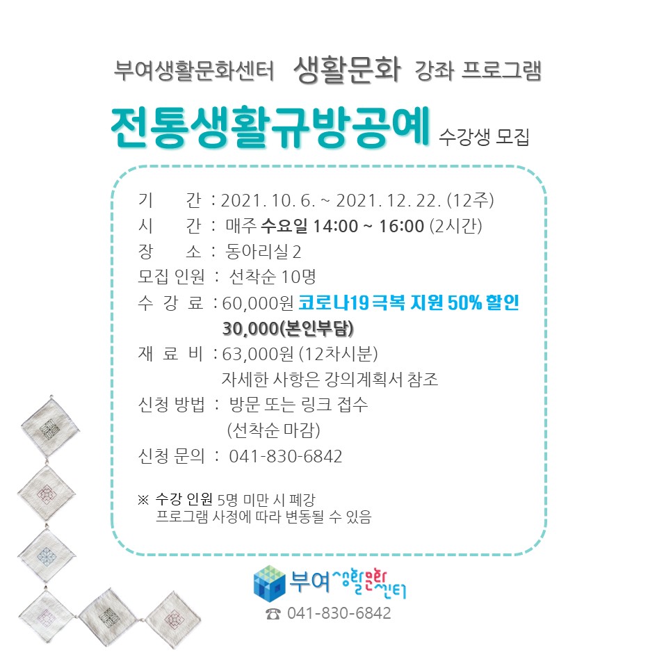 『 전통생활규방공예 수강생 추가 모집 』글의 상세내용을 확인하는 표로 제목, 작성자, 등록일, 조회, 첨부, 내용으로 나뉘어 설명합니다.