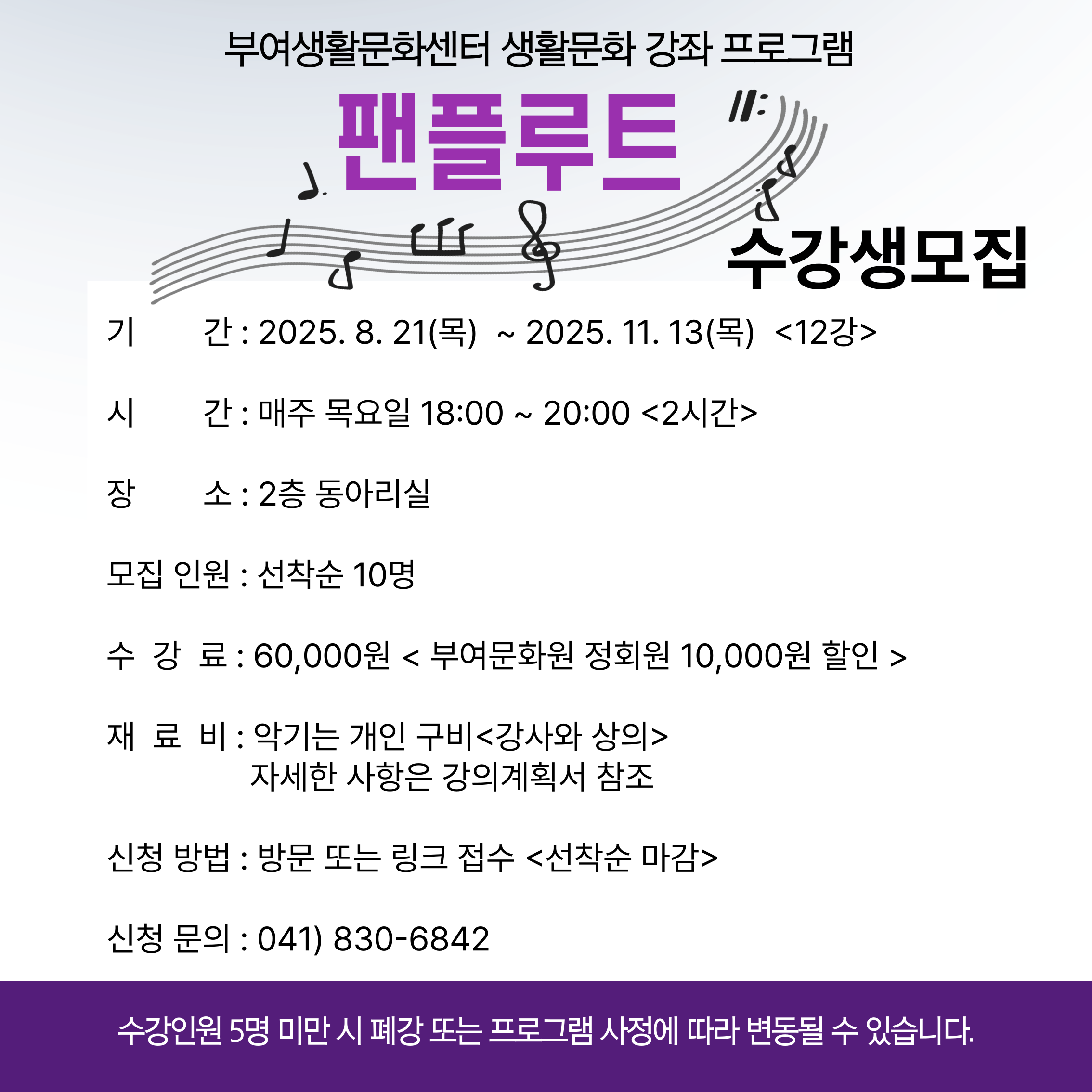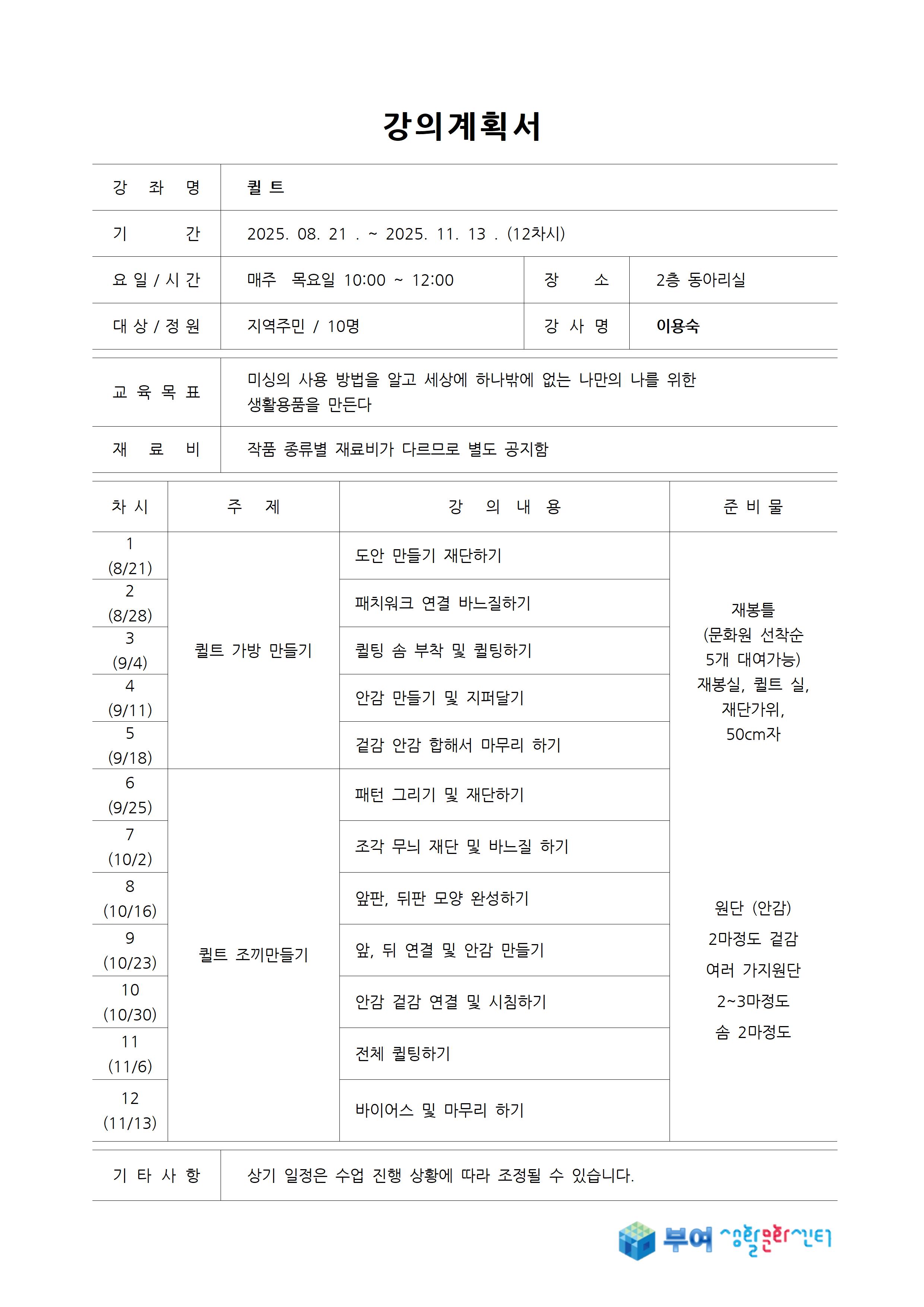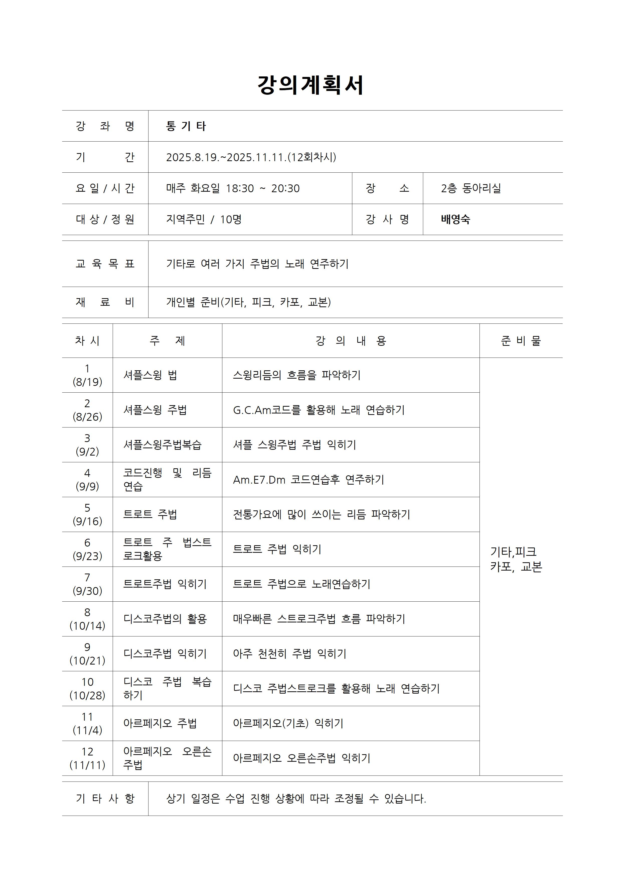 제목 | 2025년 하반기 생활문화강좌 수강생 모집안내 | ||||