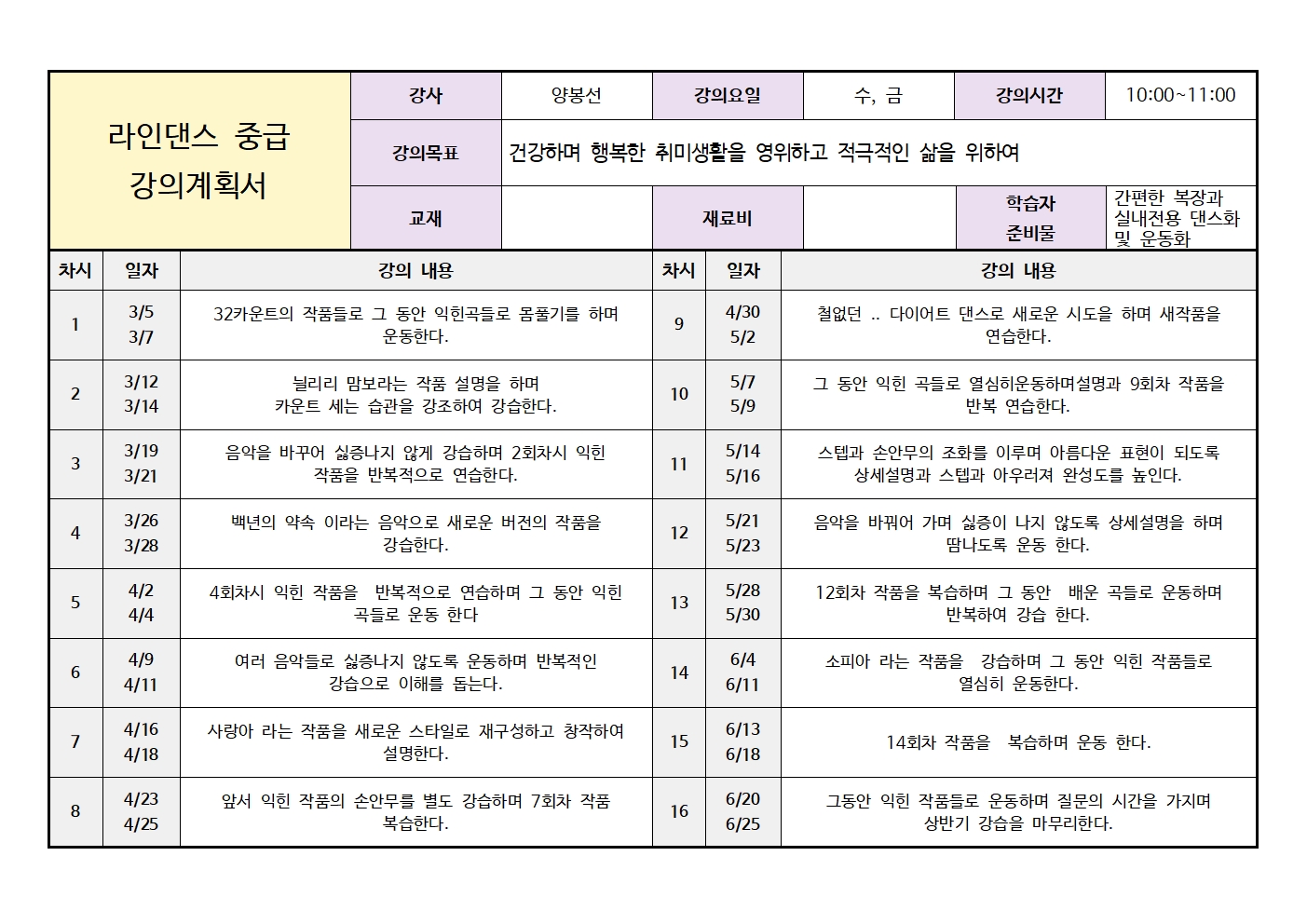 [2025 상반기] 라인댄스 중급 (양봉선)